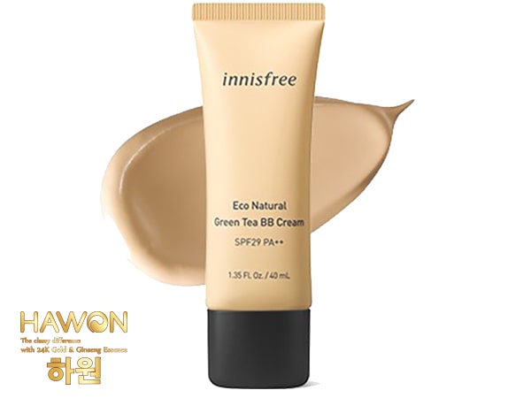 Mang đặc điểm nổi bật của nhà Innisfree, Innisfree Eco Natural Green Tea BB Cream nổi trội với thành phần lành tính. Trà xanh có trong sản phẩm đặc biệt tốt cho da mụn. Nên các bạn đang bị kích ứng mà cần trang điểm thì có thể lựa chọn Innisfree BB cream.